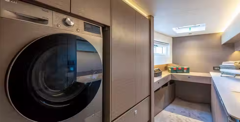 The Leopard 50 has the ideal layout for anyone looking for more outdoor living space as she comes equipped with a flybridge that includes a lounge area, table, sunbed and optional exterior speakers and shade awning. Access is provided by floating stairs leading up from the aft cockpit. An important distinction compared to similar sailboat flybridge configurations is that while under sail, passengers can move about the flybridge with ample headroom and never worry about interference from the boom. The flybridge is also situated to still maintain contact with the helm station, an important feature found on all Leopard Catamarans.